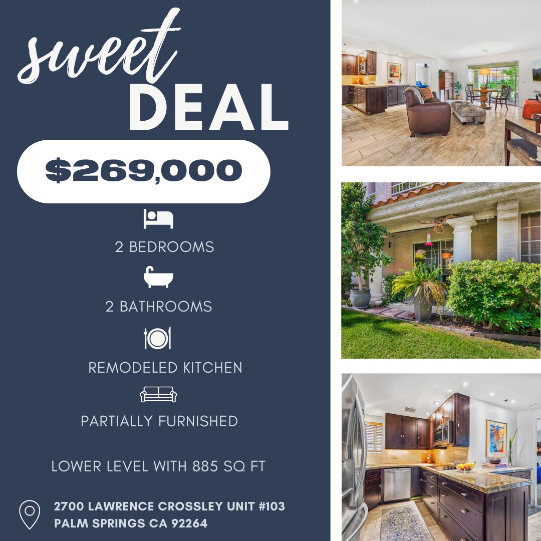 Welcome to Unit 103 at Esprit, a highly sought-after community in South Palm Springs. This beautifully remodeled, ground-floor condo features: In-unit laundry closet, open concept living and dining areas with tile flooring throughout, chefs kitchen with quartz counters and 2 en-suite bedrooms located on opposite sides of the condo for privacy.