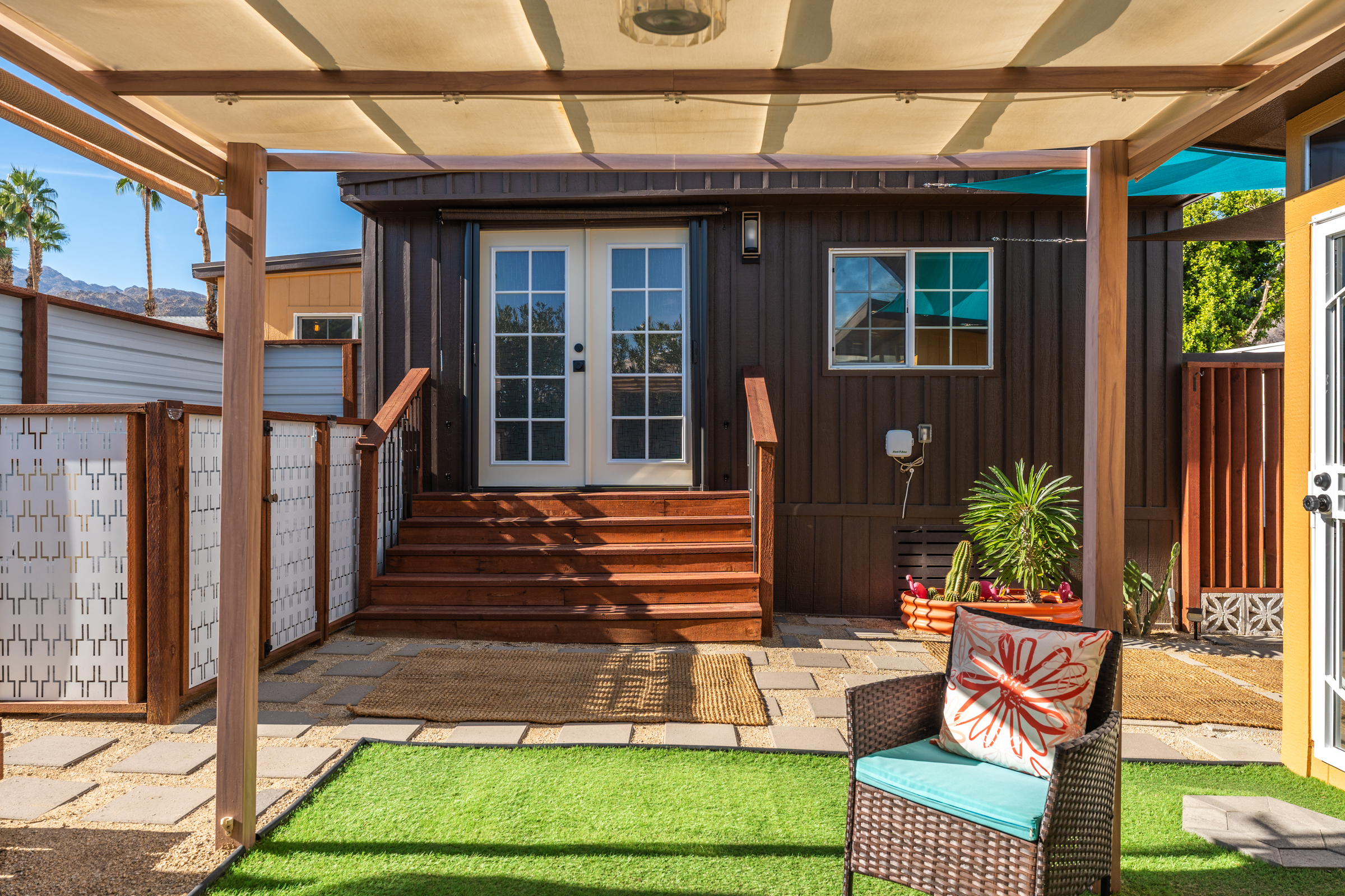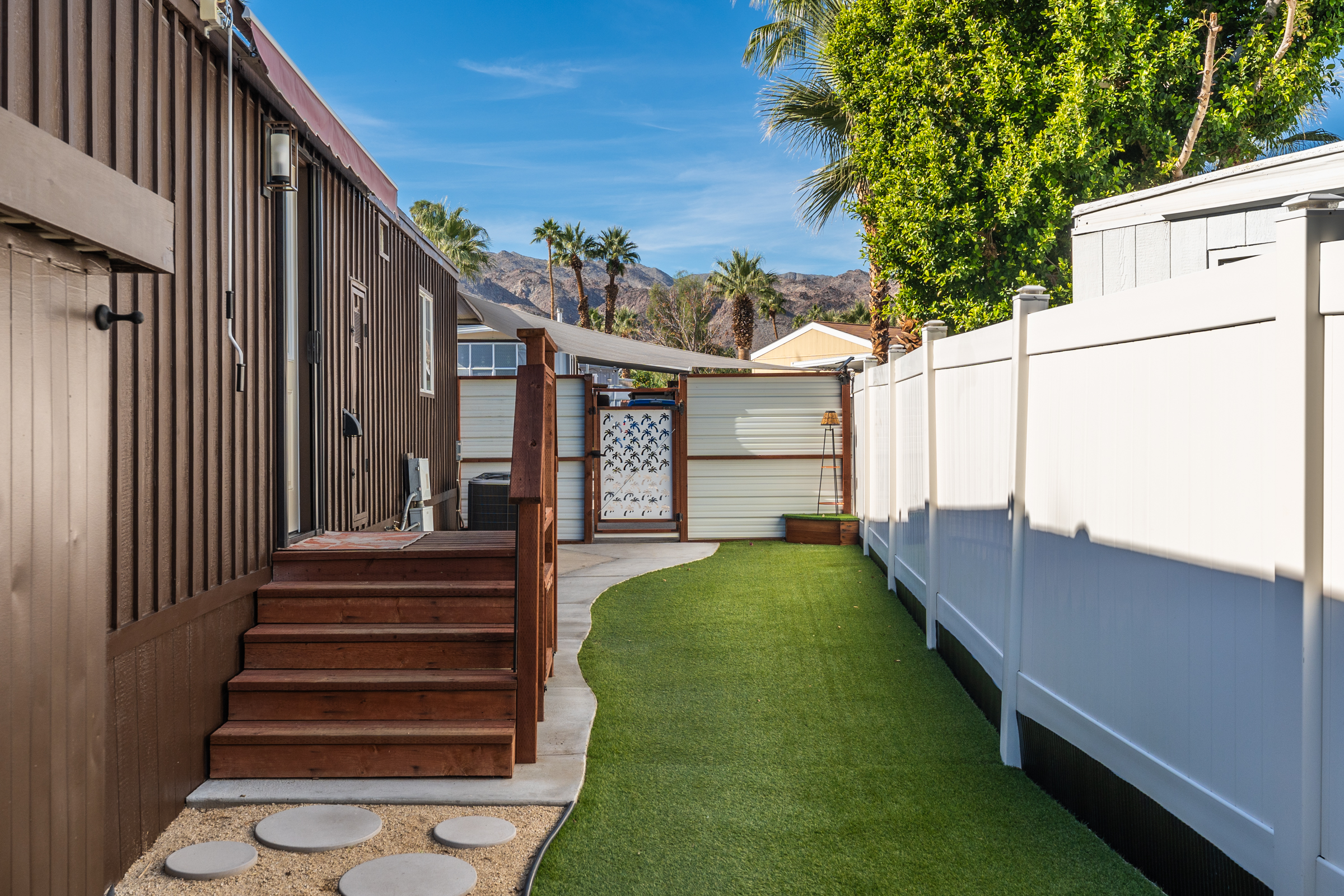 You truly have never seen a yard or a home this elevated in a park before. The all-ages community offers amenities including a pool, spa, clubhouse, and gym. Ideally located near El Paseo, with world-class shopping and dining just minutes away. Perfect as a full-time residence or a desert retreat when visiting the valley.